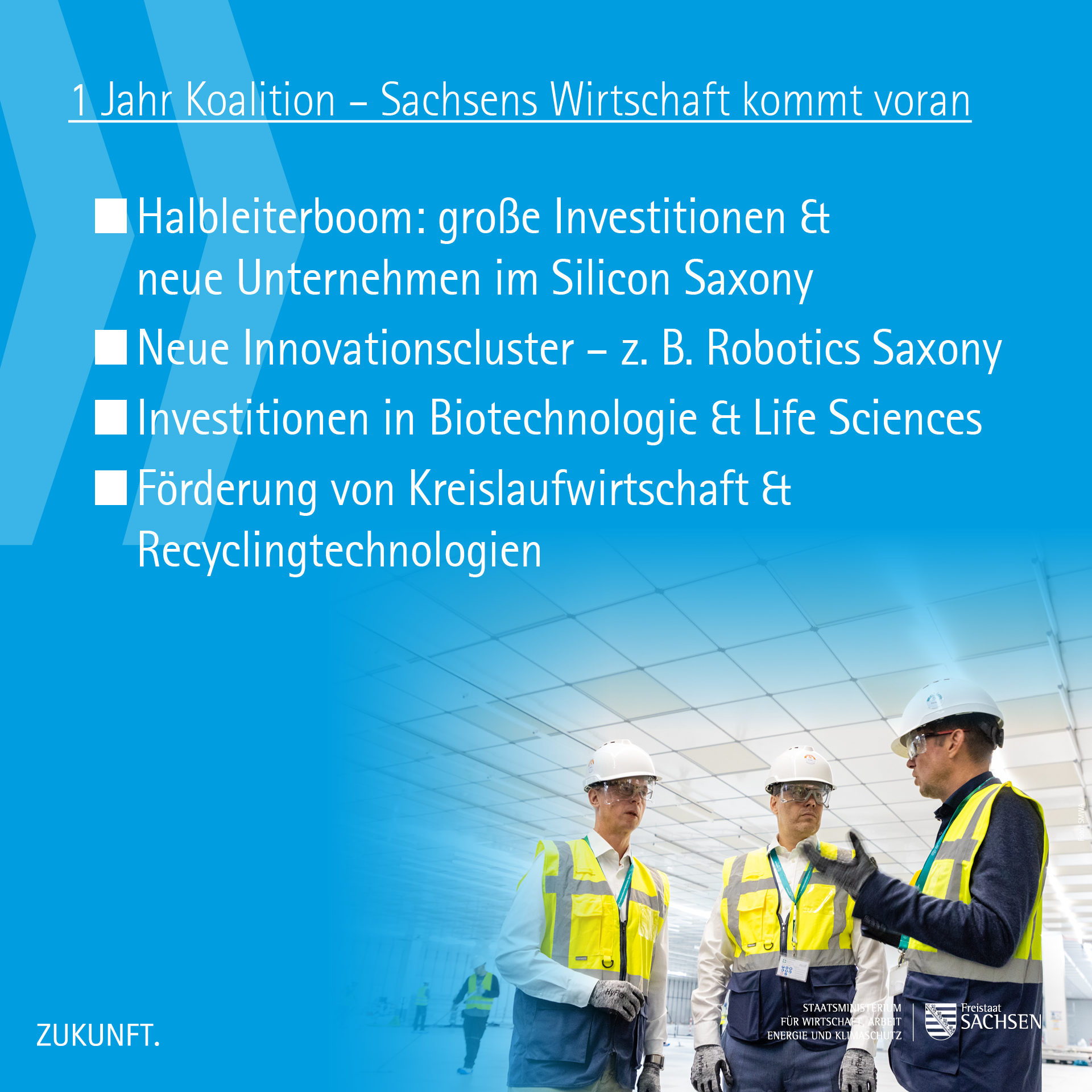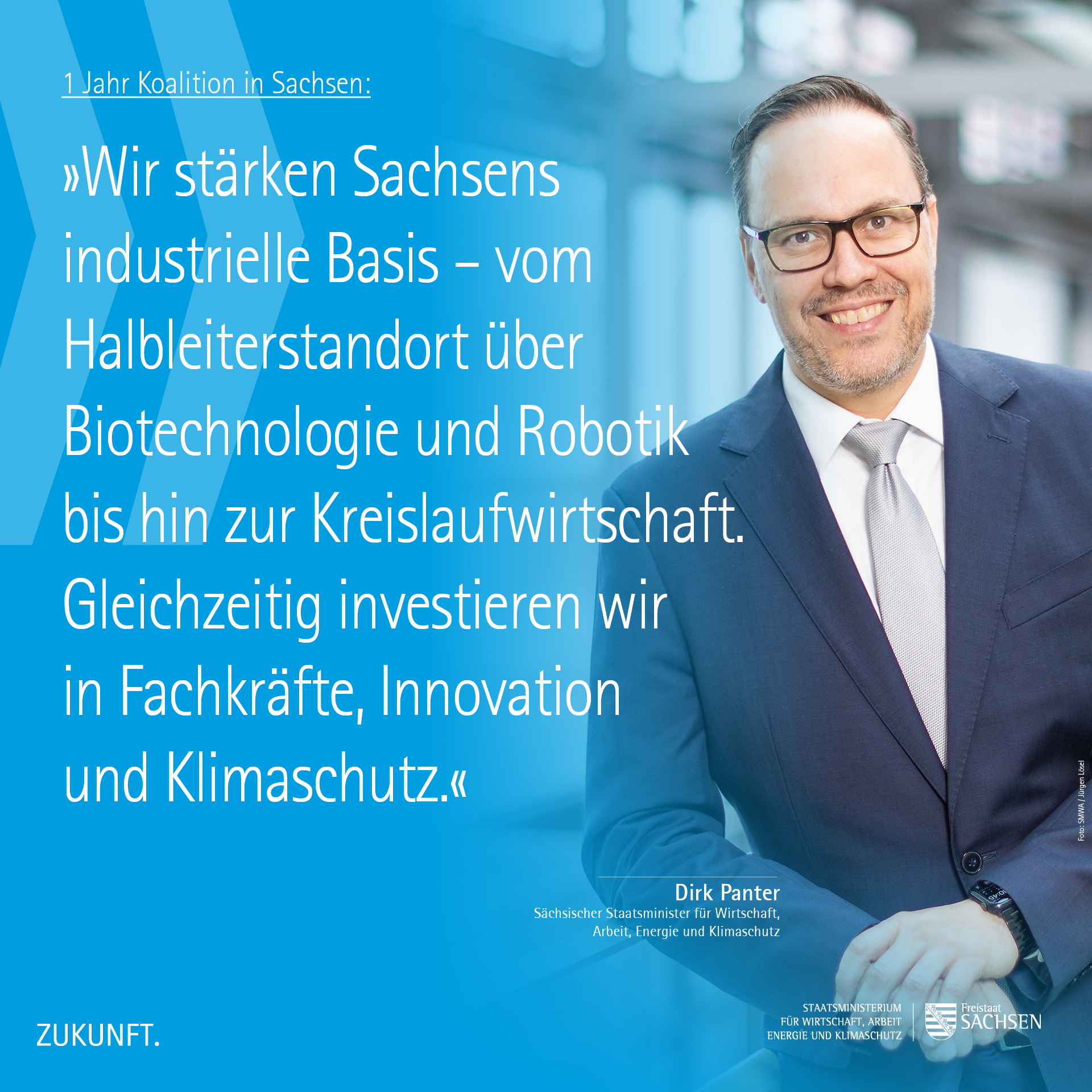 »Das erste Jahr dieser Koalition hat gezeigt, was möglich ist, wenn wirtschaftliche Vernunft, mutige Zukunftsentscheidungen und ein klarer Gestaltungswille zusammenkommen. Wir stärken Sachsens industrielle Basis – vom Halbleiterstandort über Biotechnologie und Robotik bis hin zur Kreislaufwirtschaft. Gleichzeitig investieren wir in Fachkräfte, Innovation und Klimaschutz.